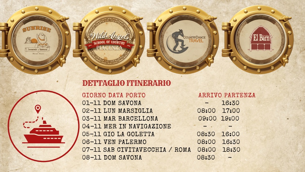 Dopo il successo dello scorso anno, si riconferma la crociera di 7 notti!! ALL FRIENDS CRUISE, LA CROCIERA COUNTRY più famosa a livello nazionale è ormai diventata Europea, imbarcando sia in Francia che a barcellona e con partecipanti provenienti anche dalla Svizzera, Austria e Slovenia. Come sempre siamo pronti a stupirvi con un’esperienza ancora più straordinaria: Per la seconda volta, visto il successo dello scorso anno, proponiamo una crociera di 7 notti, un’occasione unica per immergervi completamente nell’atmosfera country e nel fascino del Mediterraneo. Sette notti significano più tempo per ballare, più tempo per esplorare, e più tempo per creare ricordi indimenticabili con vecchi e nuovi amici: un’intera settimana di musica, divertimento e paesaggi mozzafiato che vi lascerà senza fiato!